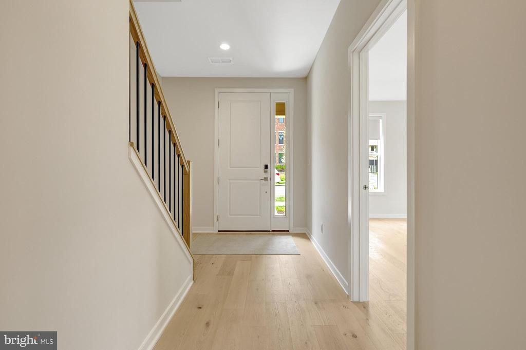 EXCITING NEW OFFERING - OPEN FRIDAY, 4/17 FROM 5:30PM TO 7:30PM AND SUNDAY, 4/19 FROM 2-4PM. Discover the perfect blend of sophisticated elegance and effortless living in this stunning 2024 Toll Brothers end-unit townhome in Ashburn’s sought-after Metro Walk community. This NoMa Virginian model spans four beautifully finished levels and features rich 6½-inch engineered white oak hardwood floors, elegant two-tone paint, recessed and designer lighting, and custom window treatments throughout. The welcoming entry level features a spacious flex room with a full bath—ideal as a home office or fourth bedroom—plus two closets and direct access to an extra-wide garage. The open-concept main level boasts a gourmet kitchen with a large center island, sleek cabinetry, quartz countertops, and a walk-in pantry, which opens to a living area with a gas fireplace, formal dining space, a powder room, and a large covered balcony. On the bedroom level, the primary suite features a generous walk-in closet and a spa-like bath with a freestanding tub, an oversized glass shower with a seat, a dual-sink vanity, and a private water closet. Two additional bedrooms share a full hall bath, and a convenient central laundry room is nearby. The finished fourth-floor loft features a wet bar, beverage cooler, powder room, and multi-panel doors that open to a rooftop terrace with both covered and uncovered seating—ideal for relaxing or entertaining. Just steps from the clubhouse, pool, gym, and yoga studio, and an easy walk to the Ashburn Metro Station, this low-maintenance home offers modern luxury in one of the area’s most convenient locations.