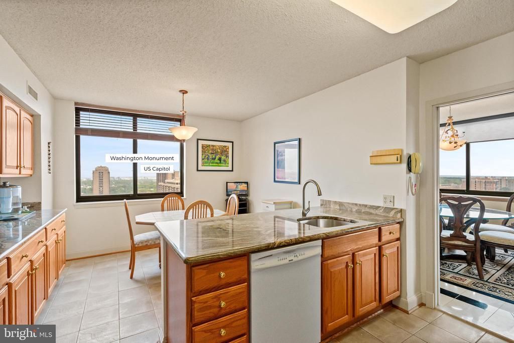 Discover luxury and rarity in the exclusive Skyline community. As one of only 26 units with this specific floor plan, this "Stratford" model is a distinguished find. The elegant, open layout features marble flooring throughout the living room, dining room, and third bedroom, creating a sophisticated atmosphere for entertaining. The kitchen is a chef’s delight, featuring granite countertops, high-end stainless steel GE appliances, and a dual entry with a window that floods the space with natural light. This unit is designed for modern efficiency, equipped with a brand-new Daikin water-source heat pump for eco-friendly climate control and a dedicated laundry room with a full-sized Samsung washer and dryer. Breathtaking Vistas & Premium Amenities: Enjoy panoramic daily views of the National Cathedral, the Washington and Jefferson Monuments, the US Capitol, National Harbor, and the Potomac River. This property includes two garage spaces and access to the community’s exclusive EV charging station—a premier feature for the area. Prime Northern Virginia Location: Developed by Charles E. Smith, the Skyline community in Bailey’s Crossroads offers a vibrant, walkable lifestyle. You are minutes away from major hubs including HQ2, the Pentagon, Shirlington, and Ballston Quarter. With easy access to I-395, I-495, and Reagan National Airport, your commute to downtown D.C. or Old Town is effortless. This sun-drenched home offers the perfect blend of luxury, location, and low-maintenance living.