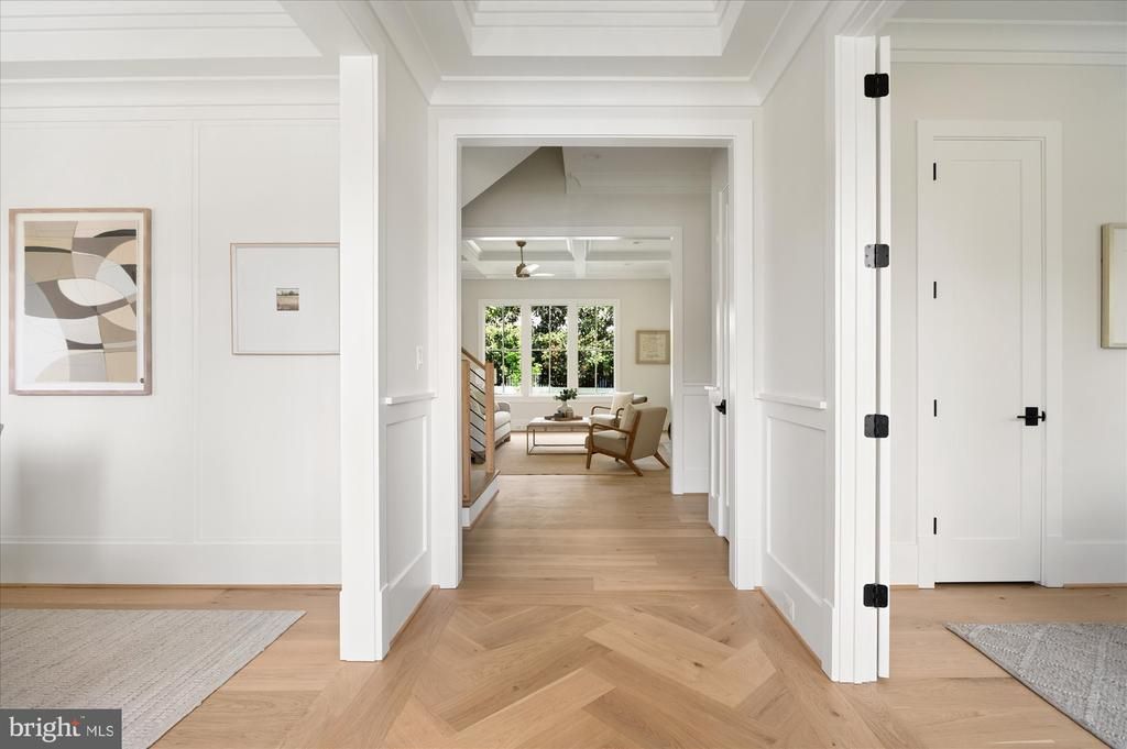 M-R Custom Homes presents this beautiful new home in an ultra-convenient North Arlington location, just a few blocks south of Virginia Square. This home features 6 bedrooms, 6 full bathrooms, and one powder room with 6,010 square feet of finished living space over four levels and gorgeous seven-inch white oak hardwood floors throughout the main and upper levels. The main level includes 10ft ceilings, and a beautiful gourmet kitchen with custom inset maple cabinetry, 2.5" quartz countertops, 48" Subzero refrigerator, 48" Wolf gas range, two Bosch dishwashers, and a built-in Wolf microwave. The kitchen opens to breakfast area and a spacious great room with coffered ceiling and a two-sided gas fireplace that also serves the flagstone screened porch with heaters and speakers. Through the butler's pantry is an elegant formal dining room with abundant natural light. A private study, formal powder room, a mud room with built-in cubbies, a large pantry, and an attached two-car garage complete the main level living spaces. The upper level is highlighted by a luxurious primary suite with dual walk-in closets with built-ins and a spa-like primary bathroom with heated floors, double vanities, stand-alone soaking tub, and heavy glass enclosed shower. The 3rd floor loft offers 788 finished square feet of additional living space with an en-suite bedroom and common area. The walk-up lower level includes a spacious recreation room with wet bar, an exercise room with rubber flooring, a bedroom with full bathroom, and a play room. The professionally landscaped 7,020 square foot lot is flat, fully fenced in the back, and includes an irrigation system and exterior lighting. Convenient to Mosaic and Maury Parks and all of the amenities of Clarendon and Ballston.
