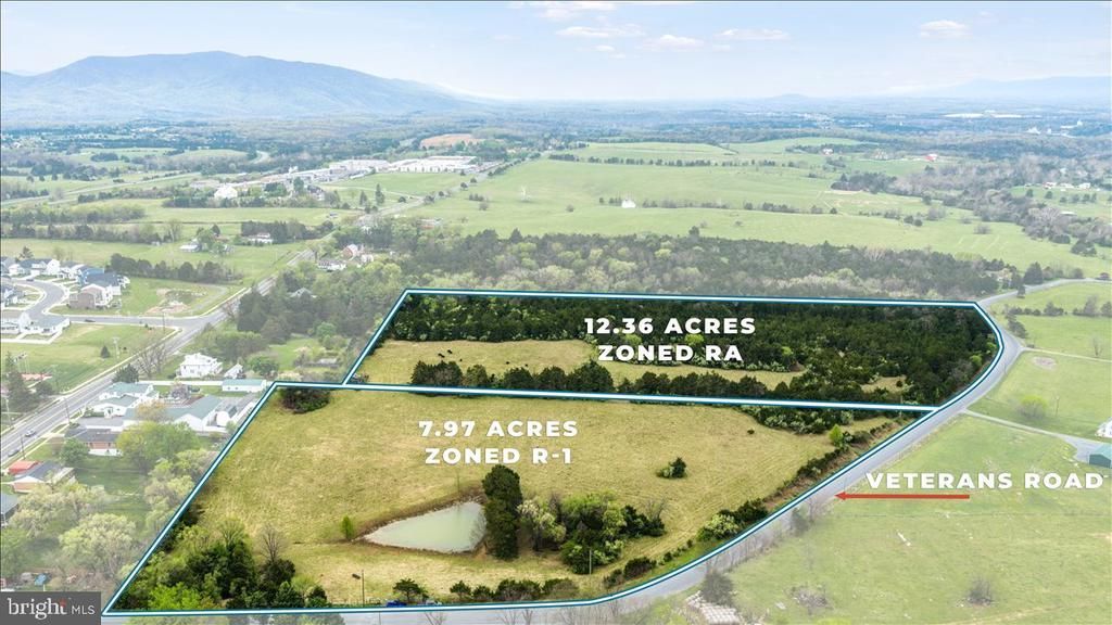 An exceptional opportunity in Middletown Virginia! This rare offering includes two parcels totaling nearly 20 acres: 7.97 +- zoned R1 with its adjoining 12.36+- zoned RA . Bring your creativity and fresh ideas, R1 zoning offers an immediate canvas, while the RA parcel invites future potential *subject to proper municipal approval* Conveniently located within town limits, coupled with mountain views and historic charm this unique offering is ready for discerning developers looking for a prime location across the Shenandoah Valley. See documents section for more information!